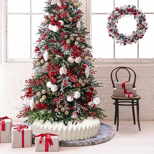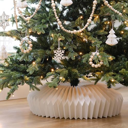 Elegante base de árbol de Navidad: este collar de árbol de Navidad añade un toque chic y moderno a tu decoración navideña por elegantly concealing the base of your artificial tree. Its sleek design a clean alternative to traditional tree skirts, creating a polished and organized look for your living room, bedroom, or other festive spaces.