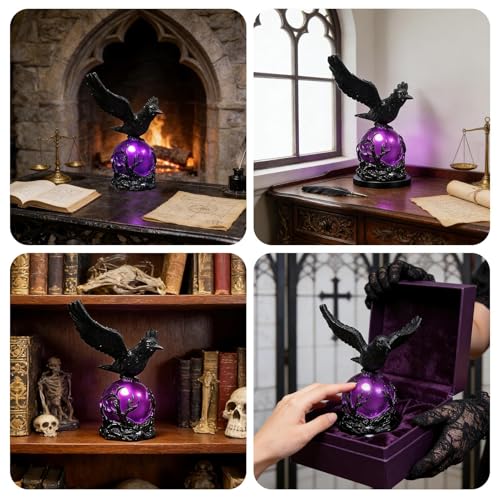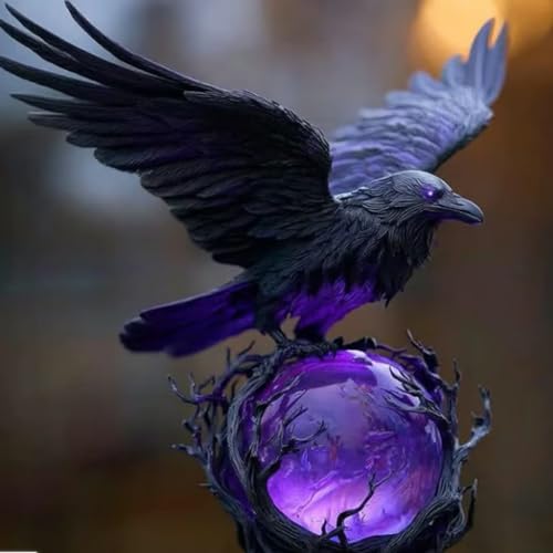 Artistic Low-Light Decor: The Raven Lamp features a raven and orb design that emits a soft violet glow, creating a mysterious light ambiance ideal for non-glaring night lighting in living rooms or bedrooms, enhancing relaxation during evening hours while adding an artistic touch to your space