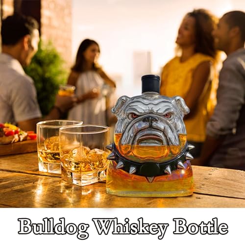 Glass Decanter – 300 ml, bulldog whiskey jug, long-lasting | Comfortable Transparent Alcohol Dispenser Collectible Home Decor For Bar Shelf Living Room Party