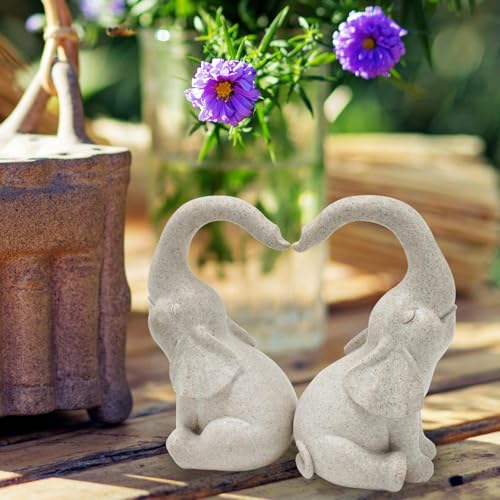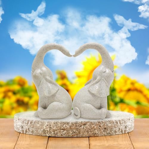Beautifully Crafted Elephant Heart Statue with Romantic Design: This elegant and charming resin figurine features two elephants forming a heart with their trunks, symbolizing love, connection, and unity, making it a perfect addition to any home or garden.