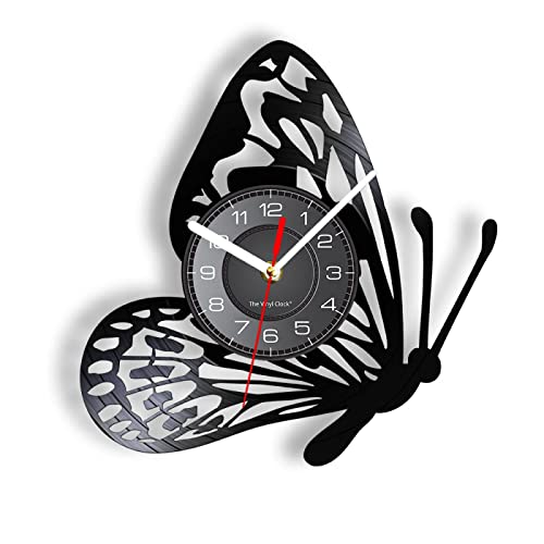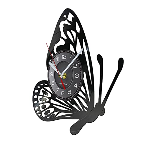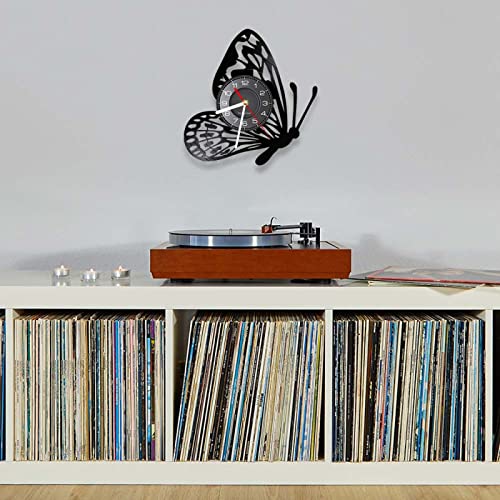 OTKU Reloj Pared 30cm Butterfly Vinyl Album Re-purposed Record Wall Clock Living Room Nature Decor Nursery Wall Art Vinyl Crafts Handmade Clock