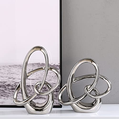Estatua moderna de cerámica plateada – Acento abstracto para el hogar y figura de mesa para sala de estar, dormitorio, baño, oficina, estante, mantel, boda, decoración de centro de mesa