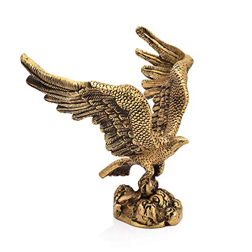 Brass Eagle Statue Wild Bird Flying Hawk Sculpture Feng Shui Decorative Home Office Showpiece Figurine(Size 6 x 5 Inches)