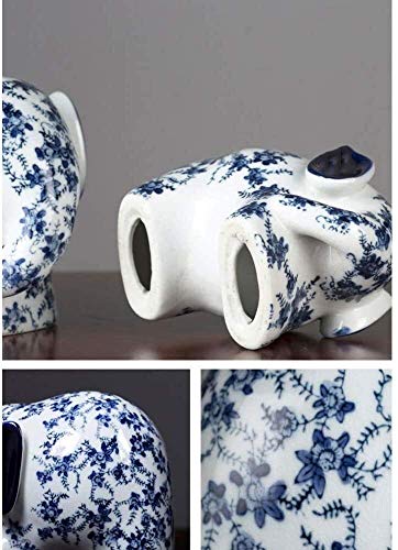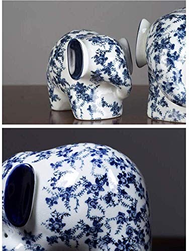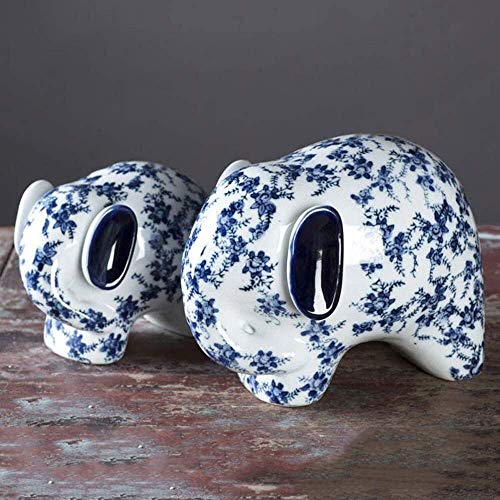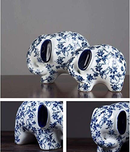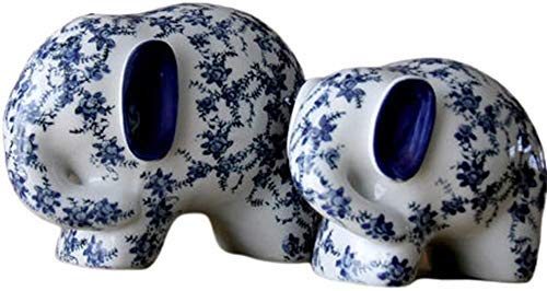 Estatuas de Elefante Un par de decoración Feng Shui Figuras de cerámica China Azul y Blanca Buena Suerte Atraer Riqueza Hogar y Oficina (Decoración del hogar Showpiece