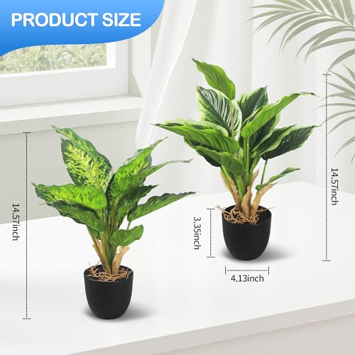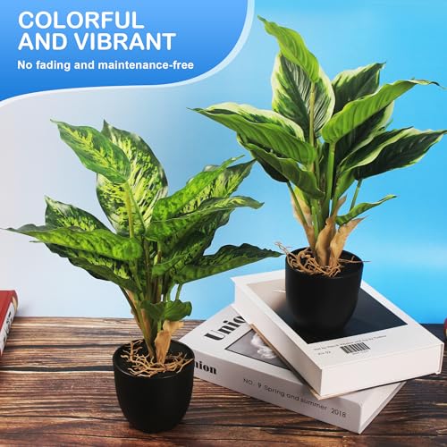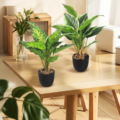2 Piezas Plantas Artificiales en Maceta, 37cm, Plantas Artificiales Interior, Fácil de Cuidar Plantas de Plastico Decorativas para Hogar, Oficina, Cocina, Baño, Decoración de Estante de Mesa