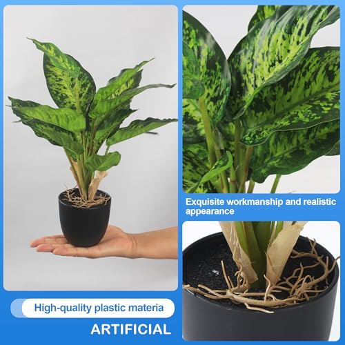 -Macetas de plantas artificiales, altura 37cm, hojas de plástico de alta calidad, diseño de raíz expuesta, hacen que la planta artificial sea más realista. Adecuado para la decoración de la sala de estar y la oficina. Las plantas artificiales son muy fáciles de cuidar. Basta con limpiar suavemente la superficie de las hojas con un paño húmedo para eliminar el polvo. Son fáciles de cuidar y no atraen plagas, ¡añadiendo vida y vitalidad a su espacio!
