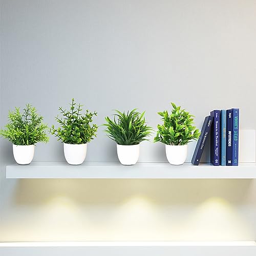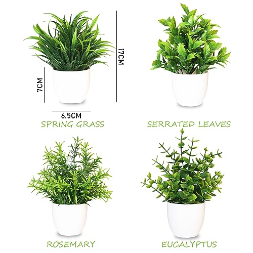 4 piezas de plantas artificiales, plantas artificiales, plantas de plástico, pequeñas plantas verdes en maceta para el hogar, dormitorio, cocina, decoración de oficina