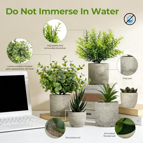 🌿【Fácil Mantenimiento】 Estas planta artificial pequeñas de aspecto realista no requieren cuidados diarios, nunca se marchitan y permanecen siempre frescas y verdes. Basta con limpiar suavemente las hojas para eliminar el polvo.