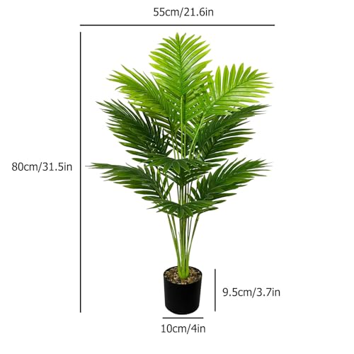 Planta de Palma de Areca Artificial con Maceta Plastico Falsa Árbol Artificial Interior y Exterior Decoración Moderna para Hogar Jardín Oficina Casa Bodas (80cm Alto Palma Grande)
