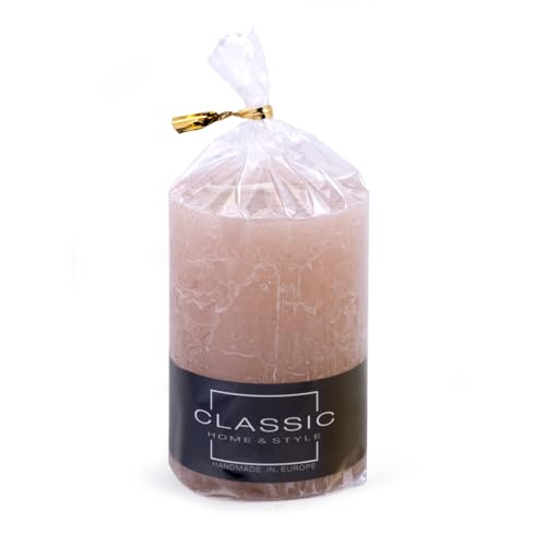 DONAU HOME 45337111-13 – Velas rústicas (1 unidad) 49 horas de combustión, sin perfume. Color: rosa pálido/rosa claro. Clásico. Velas decorativas rústicas para el hogar Pillar. Fabricado en la UE.