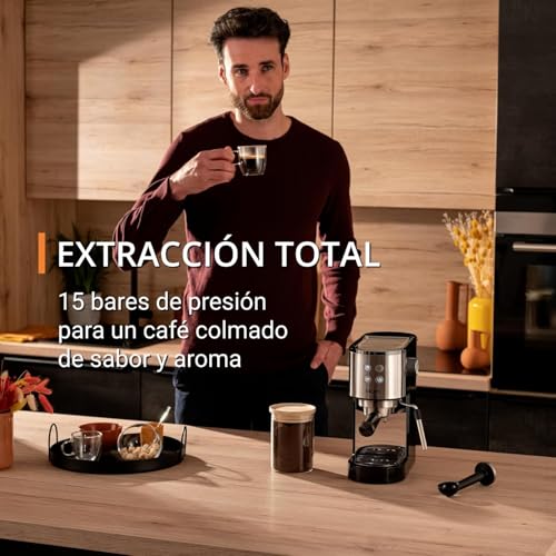 EXTRACCIÓN TOTAL: La bomba de presión de 15 bares garantiza una extracción excepcional, para obtener un espresso colmado de sabor y aroma