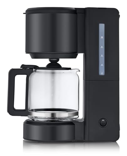 Contenido: 1 alfombrilla para cafetera (25 x 17 x 34 cm, 1000 W), jarra de cristal (1,25 l) para 10 tazas con tapa infusora, antigoteo (sin goteo después de la preparación) y protección contra desbordamiento – Número de artículo: 0412150011