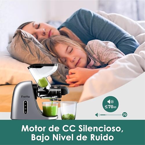 【Extracción Óptima de Jugo y Menos Desperdicio】La avanzada tecnología de extracción en frío de baja velocidad de Fretta permite a las máquinas de jugo extraer la máxima cantidad de jugo de frutas y verduras. Funcionando a suaves 80 RPM, exprime eficientemente los productos, minimizando la espuma y previniendo obstrucciones, maximizando así tu rendimiento de jugo. ¡Despídete del desperdicio y aprovecha al máximo tus ingredientes!