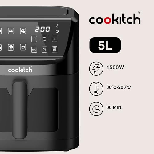 AIR FRYER 5L BLACK – Freidora de Aire con Pantalla LED, Capacidad 5L, 1500W, Ventana Transparente, Temperatura 80–200°C, Temporizador 60min – Sin Aceite, Saludable, Compacta