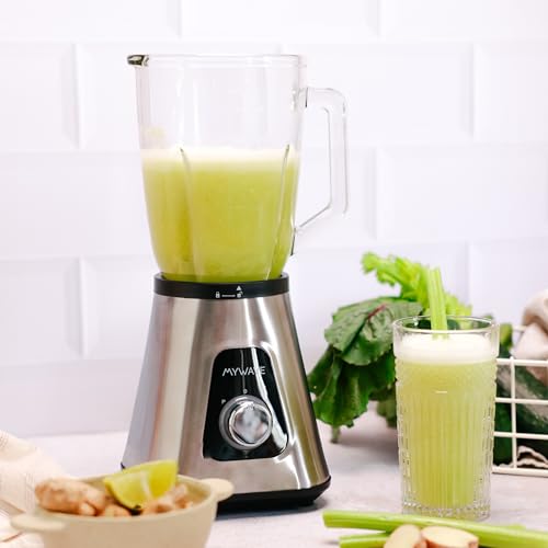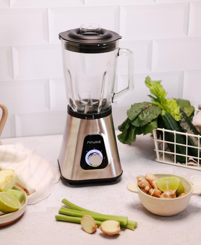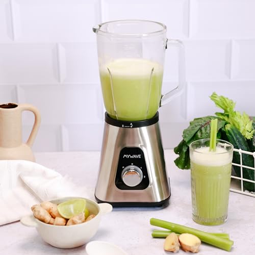 My Wave – Batidora de Vaso – Potencia de 1300W – Capacidad de 1,5L y 2 Velocidades + Pulse- Para Líquidos y Sólidos – Cuchillas de Acero Inoxidable y Vaso Extraíble – Apta para Lavavajillas