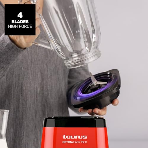 Taurus – Batidora de vaso Optima Easy 1500W | Jarra de tritan 1.5L | 2 velocidades + Turbo | Cuchillas de 4 filos | Procesador alimentos profesional | Blender Licuadora | Batidos y smoothies