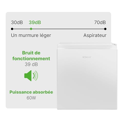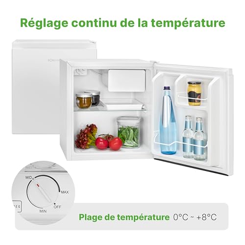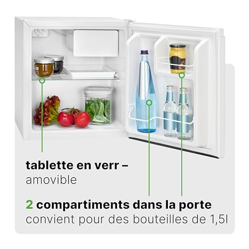 Bomann KB7245 Mini Frigorífico 45 Litros con Congelador 4 L, Minibar Silencioso, Regulador de Temperatura, Nevera Combi Pequeña, Puerta Reversible, Camping, Oficina, Eficiencia Energética E, Blanco
