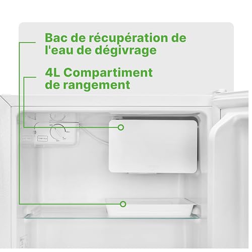 GRAN CAPACIDAD INTERIOR: A pesar de su reducido tamaño, el mini bar tiene una capacidad neta del frigorífico de 45 litros. Dispone de 1 estante en el interior del refrigerador y 2 estantes en la puerta para mantener tus alimentos y bebidas organizados.