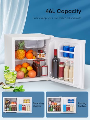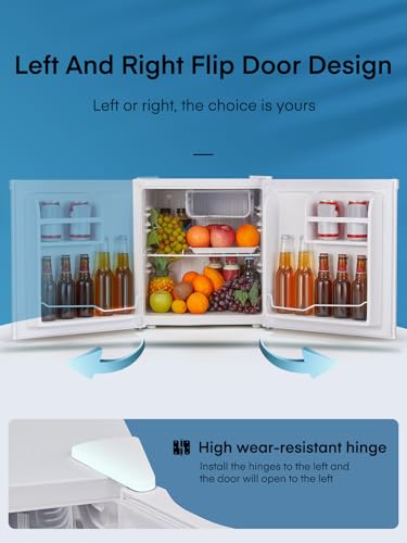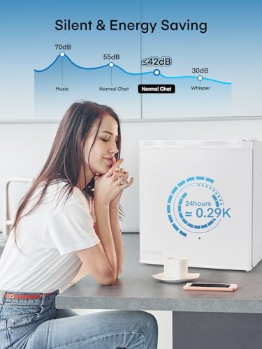 FOHERE Mininevera 46 litros, ideal para hotel, oficina y hogar, clase energética E, silenciosa, de libre instalación, compacta, con termostato ajustable y puerta reversible, color blanco.