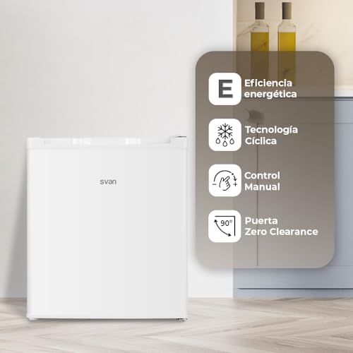SVAN Frigorífico Refrigerador Blanco SR504500E. Capacidad 41 Litros, Puerta Reversible, Bajo Nivel Sonoro, Eficiencia Energética Clase E