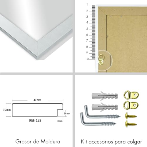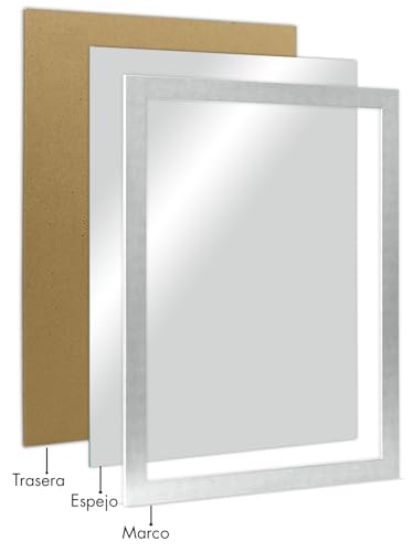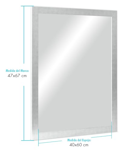 CHELY INTERMARKET MOD128 Espejo Pared Vertical Decorativo Grande Estilo Moderno Marco Madera Cuerpo Entero Elegante 40×60 cm Plateado Ideal Recibidor Dormitorio Baño Incluye Kit Montaje