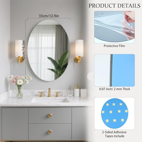 DARENYI Mirror de Pared 42 * 33cm Espejo acrílico Mirror Flexible Mirador de Espejos Adhesivo Espejos sin Pegar baldosas de Espejo Autoadhesivas para Sala de Estar, Dormitorio, decoración del hogar