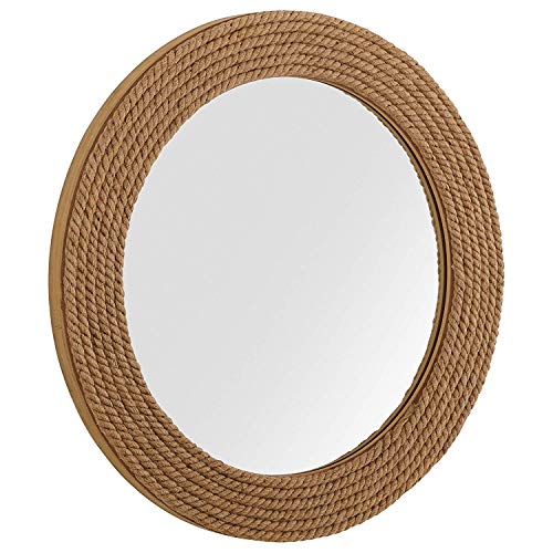 Código SKU – B074TFX9NN | Material: MDF (tablero de fibra de densidad media) + cuerda de yute + metal | Espejo de decoración de pared náutica | Espejo de cuerda acentuado náutico.