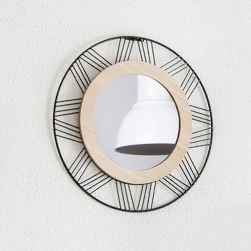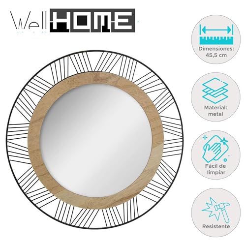 WELL HOME MOBILIARIO & DECORACIÓN Espejo Redondo de Madera y Metal, Montaje en Pared, D45 cm