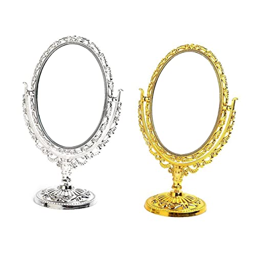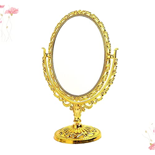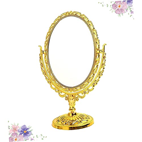 1pc European Style Cosmetic Mirror Vanity Mirror Antique Makeup Mirror Floor Mirror Oval Makeup Mirror Fold out Desk Desktop Makeup Mirror To Rotate Flower Mirror Double Sided