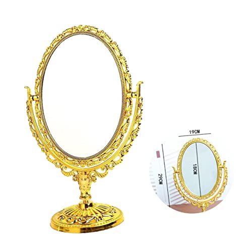 table top mirror Made of material, this cosmetic mirror is and practical for long lasting use, featuring European style retro oval shape design, not only suitable for makeup, but also can be used as the decoration of the bathroom and bedroom at home.mirror with Double-sided design, it can rotate 360 degrees, very convenient for ladies to make up
