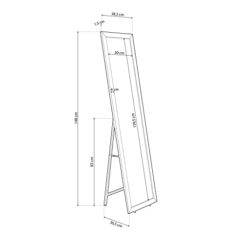 El espejo Cardiff es un espejo de pie rectangular de cuerpo entero, funcional y decorativo. Podrás colocarlo en el recibidor, salón, dormitorio, habitación, salitas o vestidores. Esta pieza se integra óptimamente en cualquier ambiente gracias a su simplicidad. Medidas del espejo Cardiff: 146,5 cm (alto) x 38,5 cm (ancho) x 30,5 cm (fondo). Se trata de un mueble con un diseño moderno, minimalista y elegante, aportará sensación de amplitud y luminosidad a la estancia que elijas. El marco del espejo está acabado en policloruro de vinilo (PVC) color Negro, decorado con un estampado estilo mosaico. Este tipo de material tiene una superficie no porosa y muy resistente. Por lo tanto, es un mueble fácil y rápido de limpiar con un paño húmedo. Requiere montaje (incluye instrucciones y herrajes).