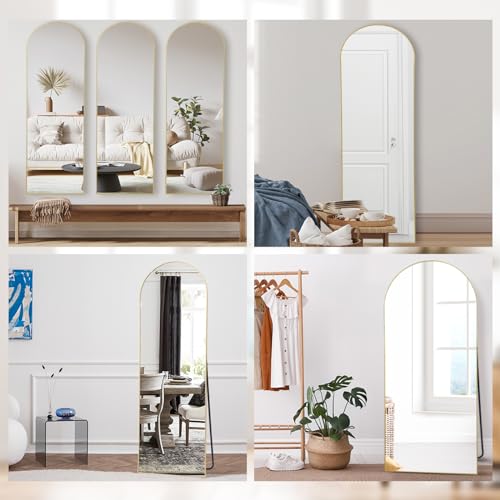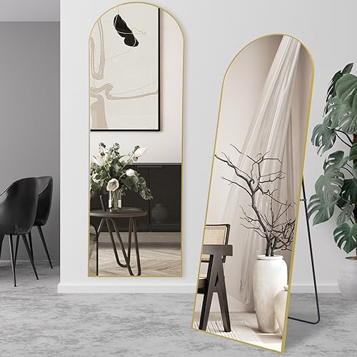 Espejos de cuerpo completo de pie, espejo de piso con marco de oro arqueado, para montar en la pared, para dormitorio, sala de estar y entrada, 147×44 cm