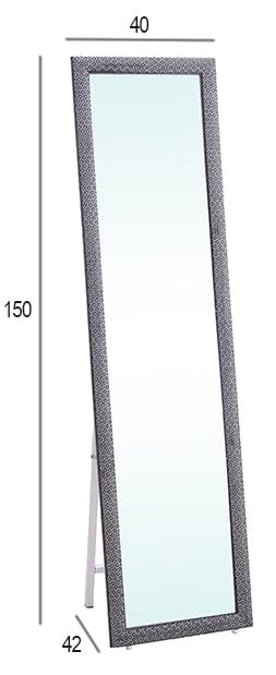 Realza tu espacio con nuestro espejo de pie rectangular de cuerpo completo, un elemento funcional y decorativo que añade estilo a cualquier habitación. Perfecto para el recibidor, sala de estar, dormitorio o vestidor. Marco estampado con un precioso diseño étnico que aporta un toque distintivo a tu decoración. Medidas: 40 cm (Ancho) x 150 cm (Alto) x 42 cm (Fondo). El marco del espejo está acabado en policloruro de vinilo (PVC) color Negro, decorado con un precioso estampado étnico. Superficie no porosa y muy resistente. Mueble fácil de limpiar con un paño húmedo. Mueble en Kit de facil montaje.