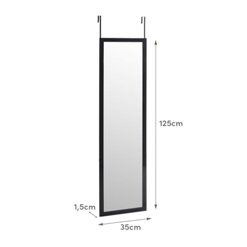 LOLAhome – Espejo Negro Largo Rectangular para Colgar en Puerta o Pared de Cuerpo Entero de 125×35 cm, Incluye 2 Ganchos fáciles de Quitar para Colgar en Puertas