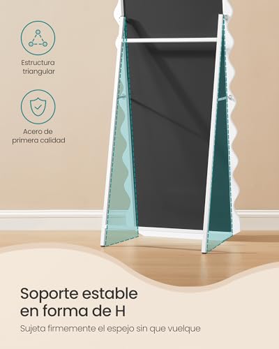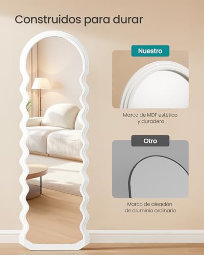 SONGMICS Espejo de Cuerpo Entero, 160 x 50 cm, Espejo de Suelo Ondulado Irregular con Soporte, de Pie, Marco MDF, para Dormitorio, Salón, Entrada, Blanco Nube LFM027W01