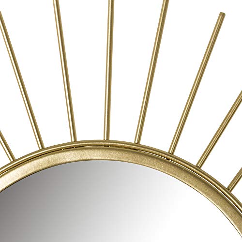 LOLAhome Espejo Redondo Sol Dorado de Metal con Marco de 45 cm de diámetro y Espejo de 18,5 cm de diámetro