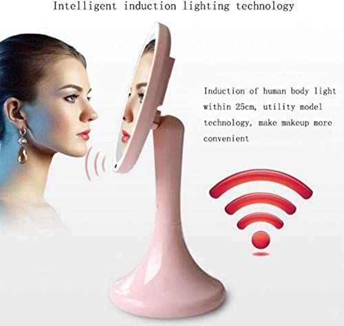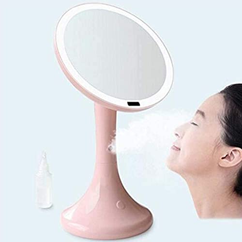 Espejo de Maquillaje Iluminado, 30 Led Light Makeup Mirror Hidratante Spray Batería y USB Powered Vanity Mirror 25CM Infrared Body Sensing Screen Mesa Espejo cosmético Iluminar