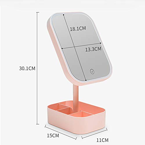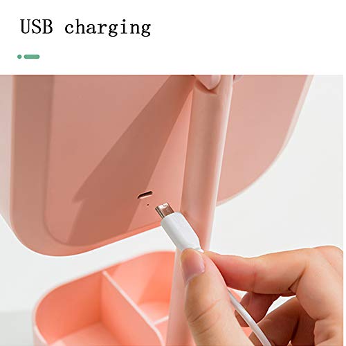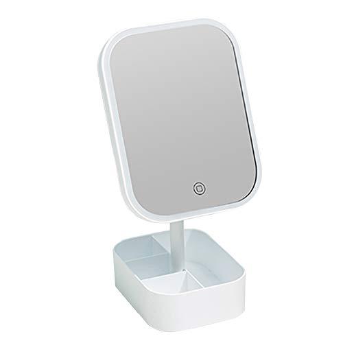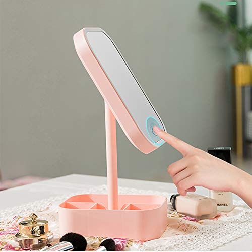 Espejo De Maquillaje LED con Caja De Almacenamiento, Luz Fría/Luz Natural/Luz Cálida + Soporte Ajustable De 360 Grados, Pantalla Táctil Y Carga USB
