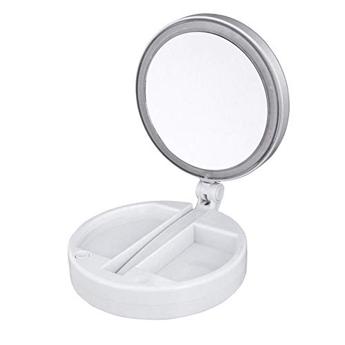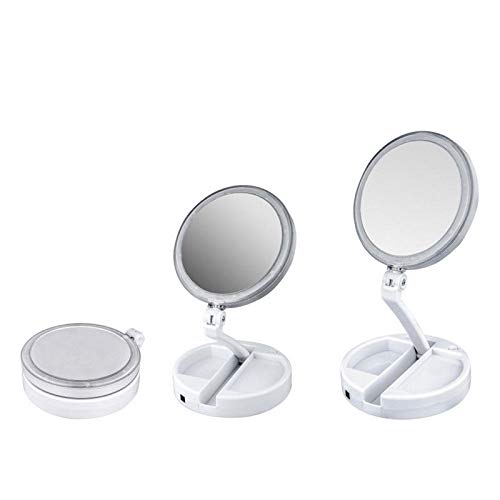Espejo de maquillaje plegable portátil 1X/10X con luz LED de doble cara, rotación de 270°, espejo de mesa, baterías o carga USB