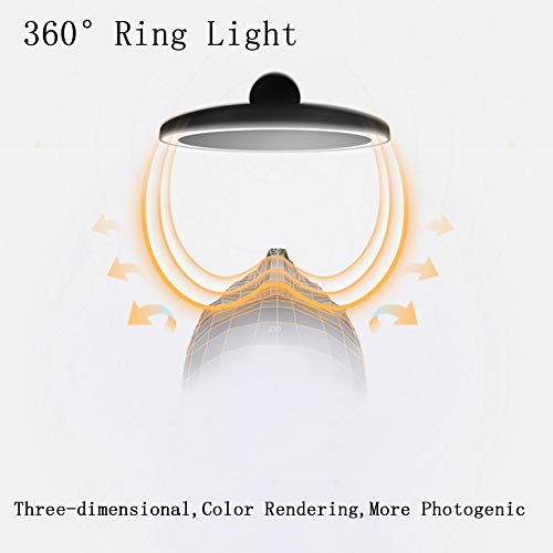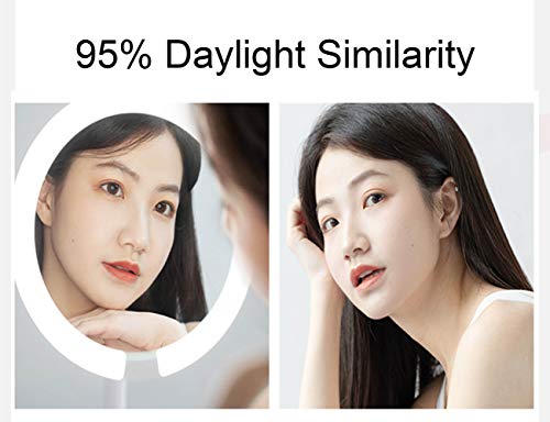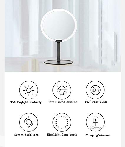 Espejo Maquillaje de Mesa con luz,Espejo tocador,Espejo Cosmético 3 Brillos Regulables, rotación de 60°Travel Portable LED Makeup Mirror, Carga USB, Negro/Sección a