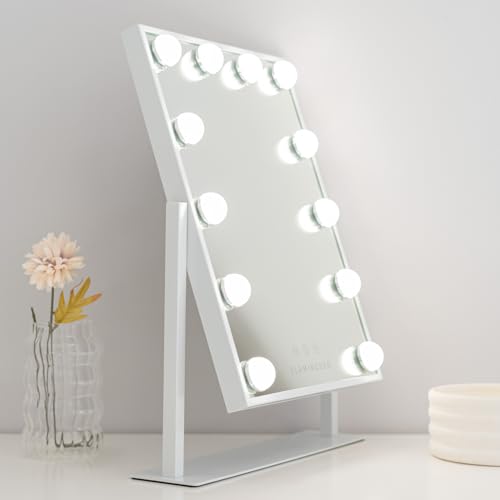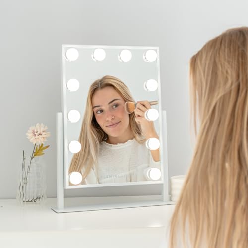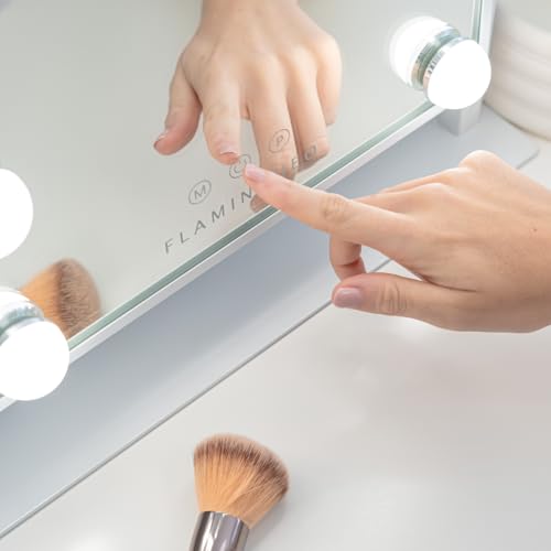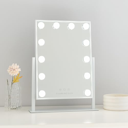 Flamingueo Espejo Maquillaje con Luz – 12 LED – 3 Modos de Luz – Intensidad Ajustable – Control Táctil – Posición Regulable – Vanity Mirror – Blanco – 36,5×7,5×47,5cm