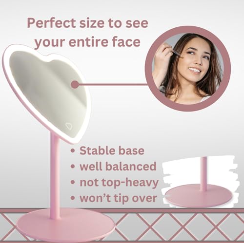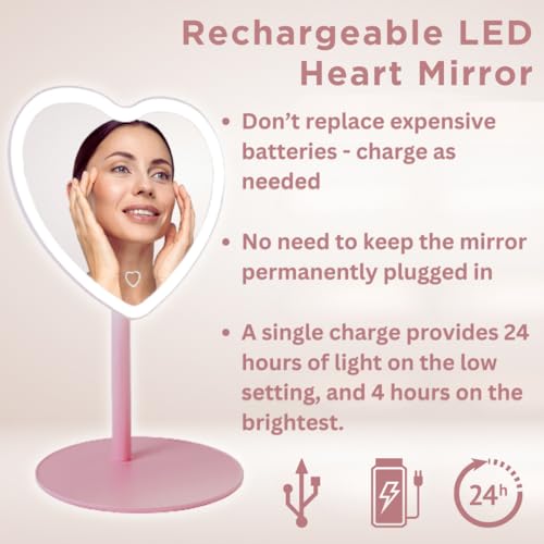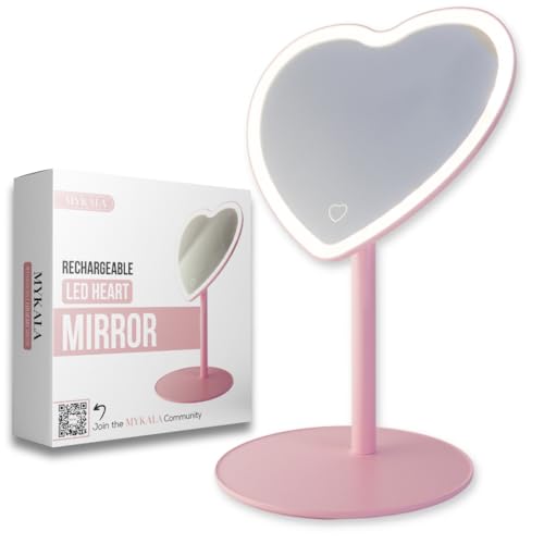 Mykala Rechargeable LED Pink Heart Mirror for Girls Pink Room Decor & Aesthetic Touch – Cute Mirror for Young Girls’ Rooms – Ideal Gift for Daughters