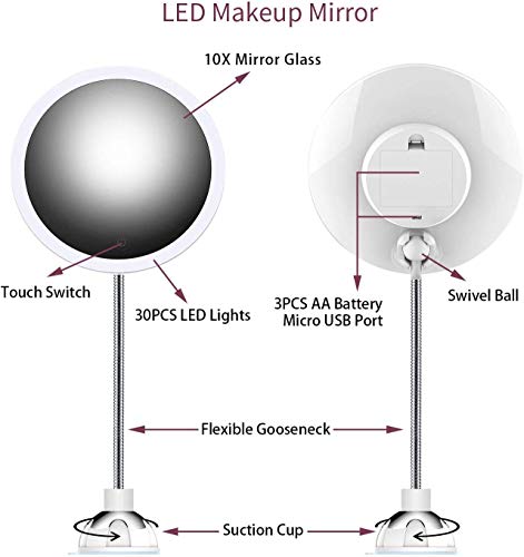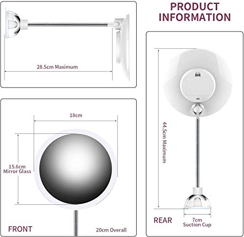 STLOVe® LED Espejo De Maquillaje, 10X Iluminado Espejo Cosmético De Tocador, Blanco Aumento con Ventosa & El Cuello De Cisne, FlexibleRotación Libre De 360 °, Baño Mujer Espejo (Mirror 4)