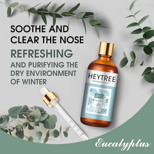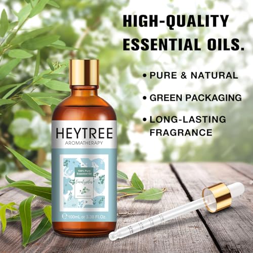 GRANDE PARA AROMATERAPIA – Aceite esencial de eucalipto HEYTREE para aromaterapia, masajes, cuidado de la piel, difusores, mezclas caseras, bombas de baño, lavandería y uso en hogares, oficinas y jardines.