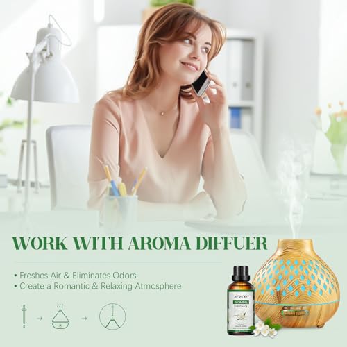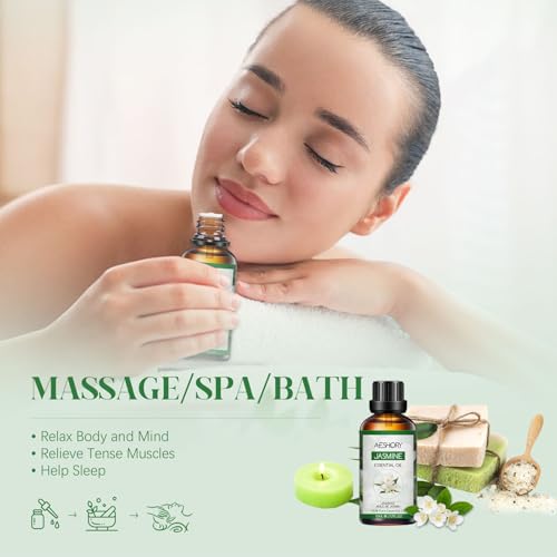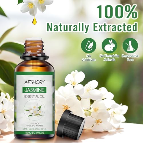 AESHORY Aceite Esencial de Jazmín 50ML, Natural Aceite de Aromaterapia de Jazmín, Aceites de Fragancia Premium para Humidificador, Masaje, Baño, Cuidado la Piel, Relajación y Calma