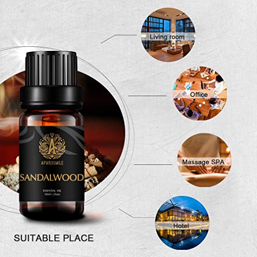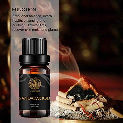 Ingredientes: los aceites esenciales de aromaterapia Aphrosmile con aroma a sándalo se extraen de rosas utilizando tecnología de extracción superior, que es 100% natural puro, sin adulterar, aceites esenciales de grado terapéutico. Y el aroma de aceites esenciales de sándalo no está adulterado y libre de crueldad.