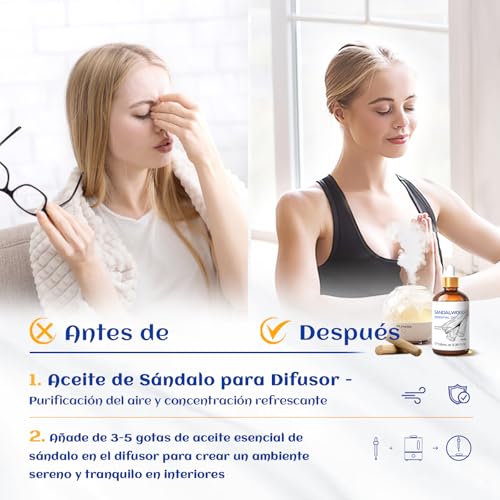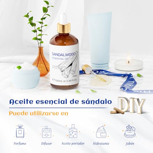 HIQILI Aceites Esenciales De Sándalo 100ML, Aroma Duradero Para Perfumes, Difusores, Fabricación De Jabones Y Velas – 3,38 fl oz