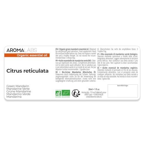 Mandarina Verde BIO (Citrus reticulata) – 30 mL – Aceite Esencial Quimiotipado y Certificado AB – Aroma Labs