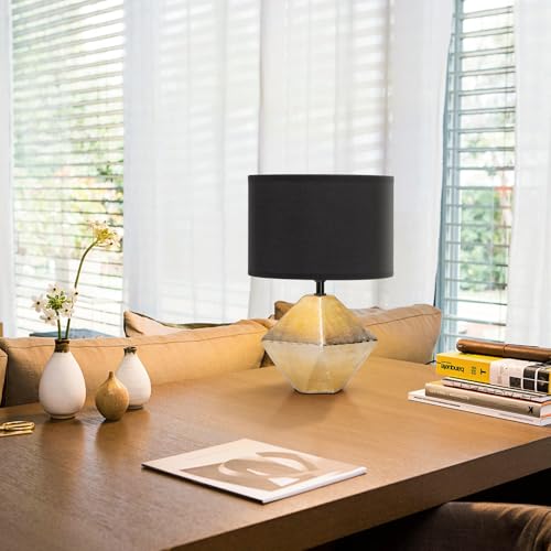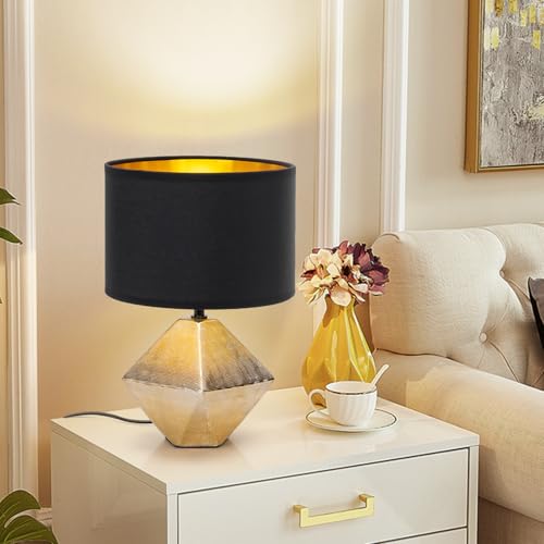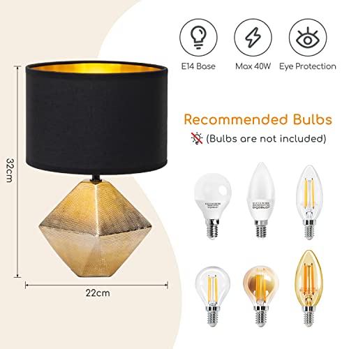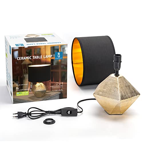 Aigostar 197179 – Lámpara de Cerámica, casquillo E14, φ220mm. Forma de diamante, Dorado. Lámpara de Mesa o Mesita de Noche, Pantalla de Tela, Lámpara Escritorio Diseño moderno para Estudio, Salón etc