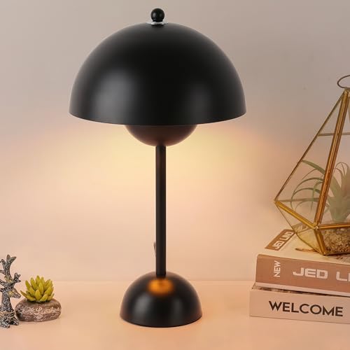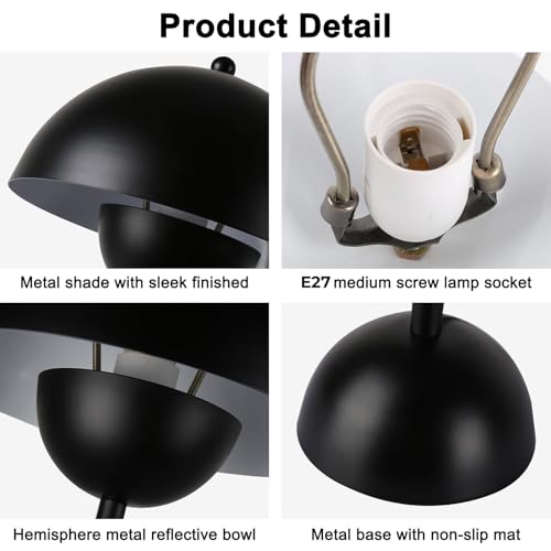 Alpinaluz Lámpara de Mesa Retro de Acero – Diseño Escandinavo con Doble Cúpula Semiesférica, Luz Indirecta, Casquillo E27, para Mesita de Noche, Escritorio o Salón Moderno (Negro)